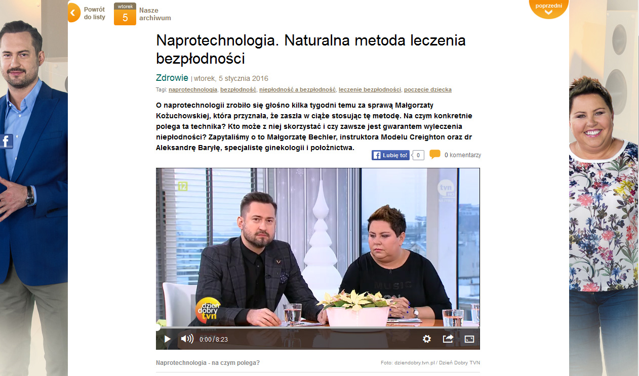 Dzisiaj włączyłem dzień dobry tvn, zobaczyłem że będą mówić o naprotechnologii, pomyślałem obejrzę (materiał na dole).